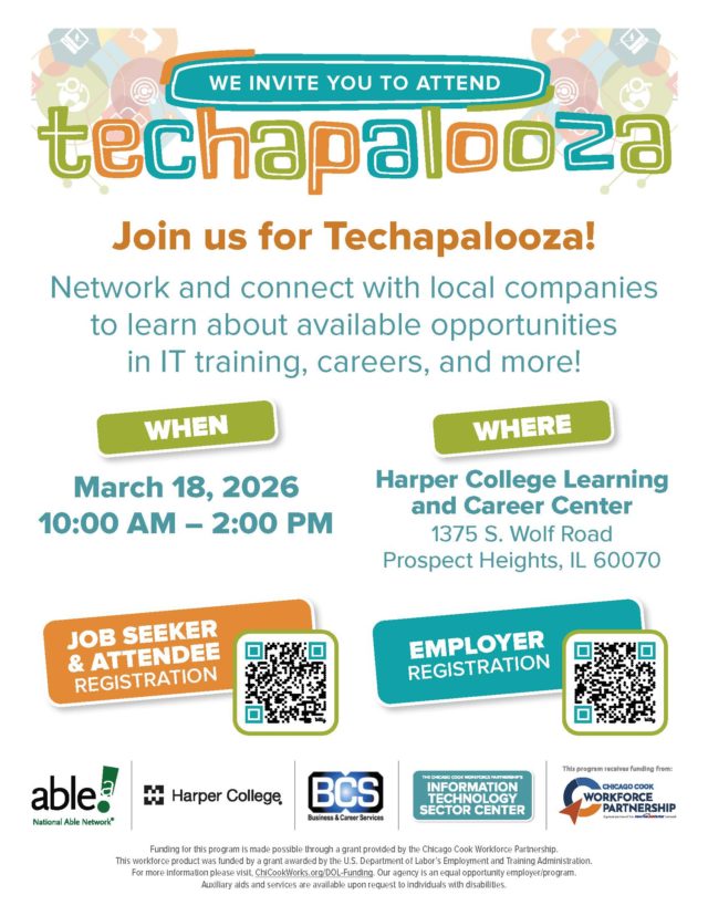 Join us for the first Techapalooza of the spring! Network and connect with local companies to learn about available opportunities in IT training, careers, and more!